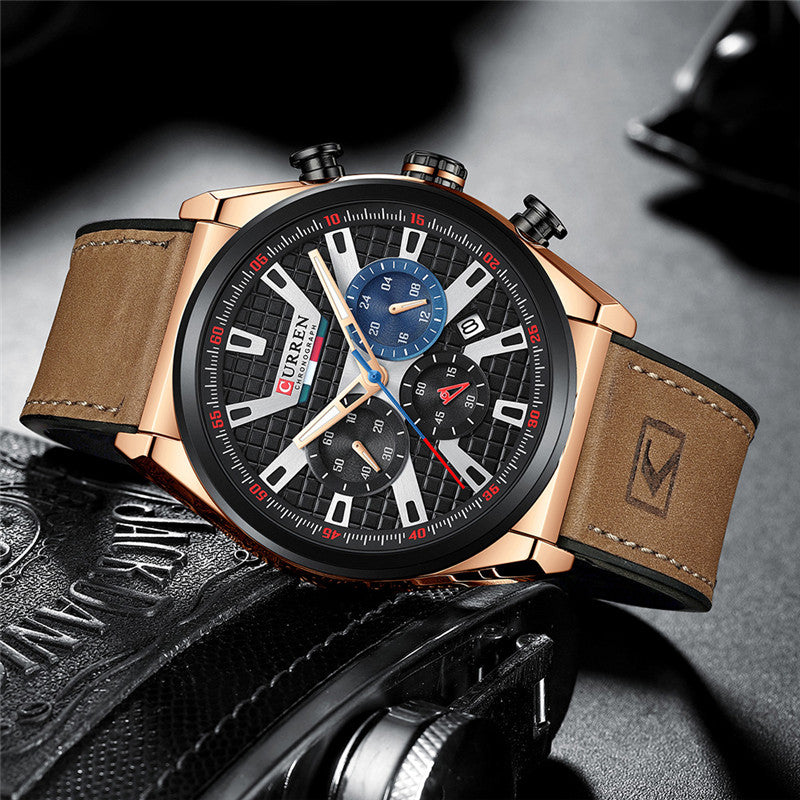 - Feature: STOP WATCH,Shock Resistant,Auto Date,Chronograph,Complete Calendar,Water Resistant,luminous hands