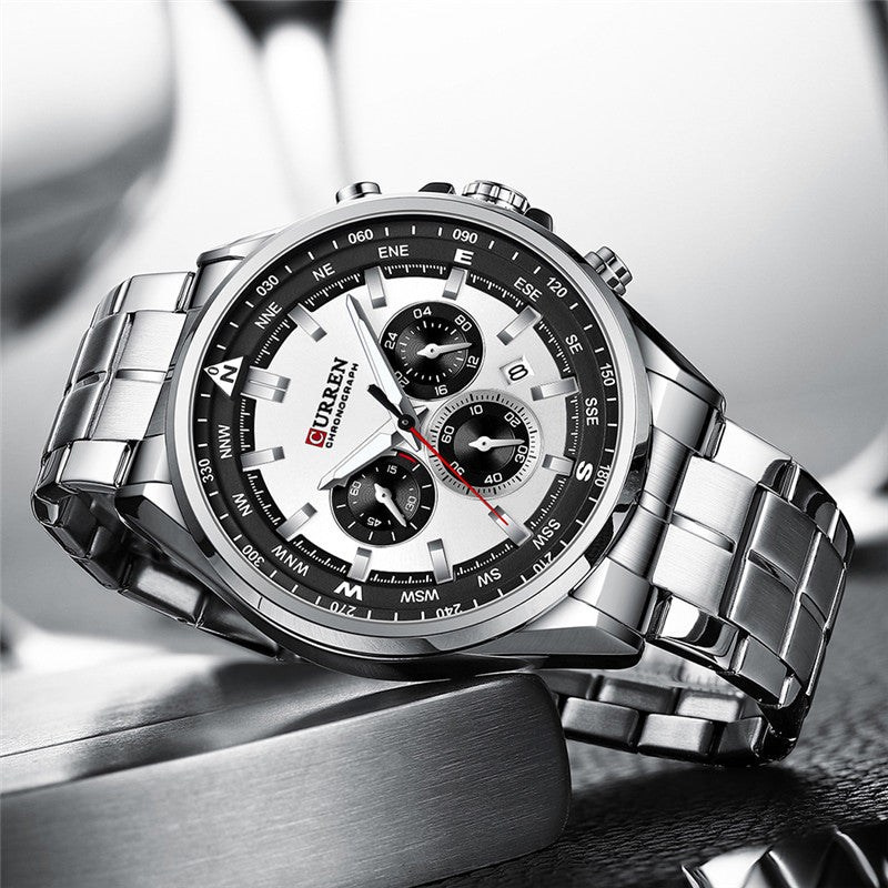 - Feature: STOP WATCH,Shock Resistant,Auto Date,Chronograph,Complete Calendar,Water Resistant,luminous hands