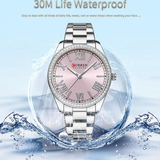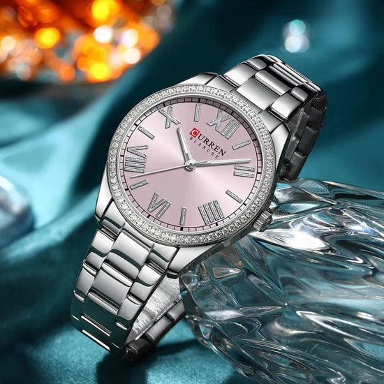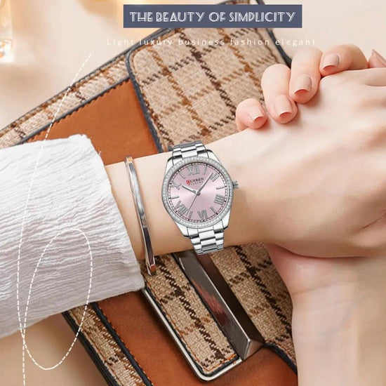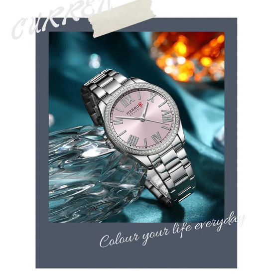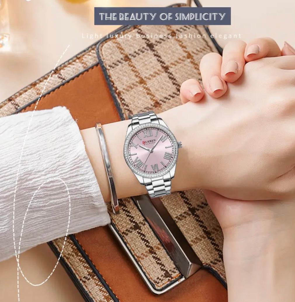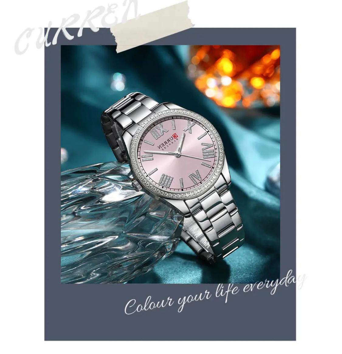 CURREN 9088 2023 new charming Silver stainless watch with a pink dial for women.