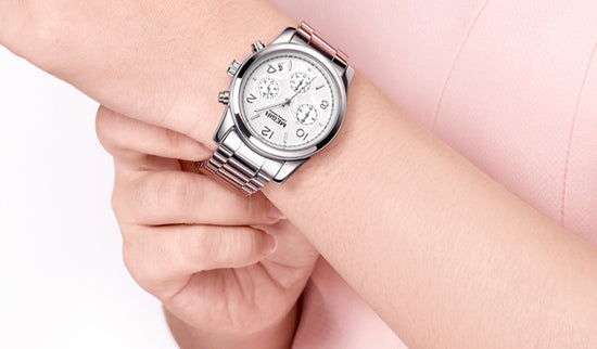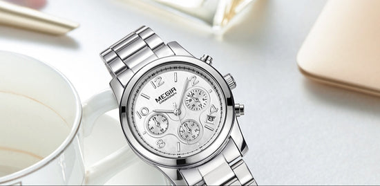 MEGIR MS2057 Silver plus White Dial Stainless Steel Bracelet Luminous Wristwatch for Women.