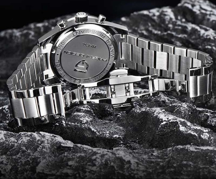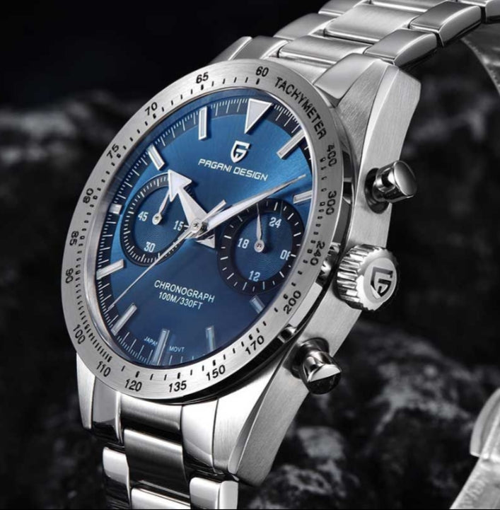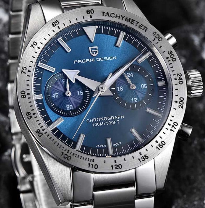 Pagani Design PD1766 Men's Watch Chronograph. Powered with the Japan imported VK65 movement which incorporates a hybrid of mechanical and Quartz technology. Features a chronograph function and 316L stainless steel.